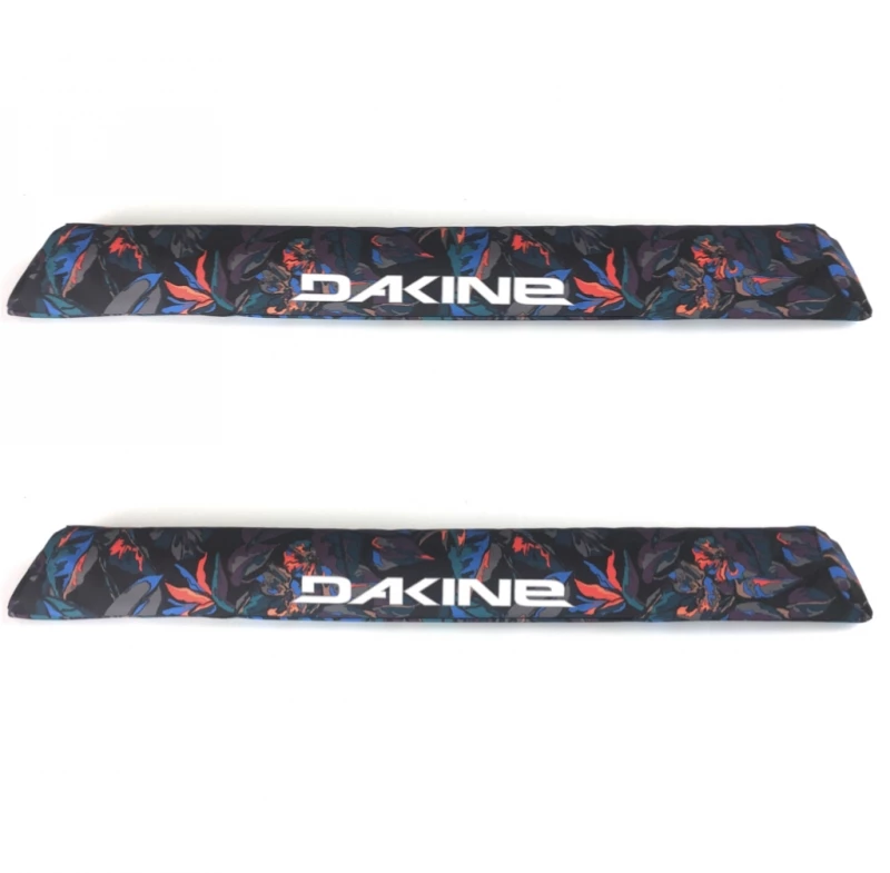 28 inch wide Dakine aero roof bar pads, Tropic Dream design, high density padding. 3.5 inches deep which fits almost all aero style bars. 600d highly durable polyester full length velcro underneath.