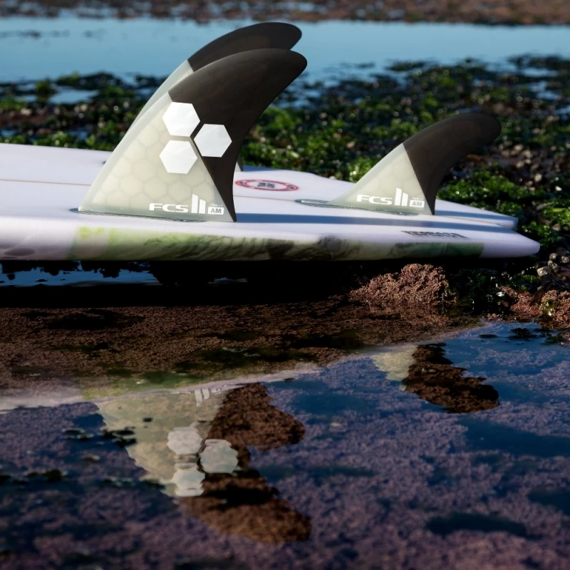 The FCS II AM Twin + 1 was tested and refined by CI’s team riders such as Rob Machado, Dane Reynolds and Dane Gudauskas. Typically suited to boards with lower rocker, these fins pivot and release exceptionally well, require minimal effort to turn off the top, while maintaining incredible speed and acceleration due to the lack of resistance typically caused by a larger centre fin.