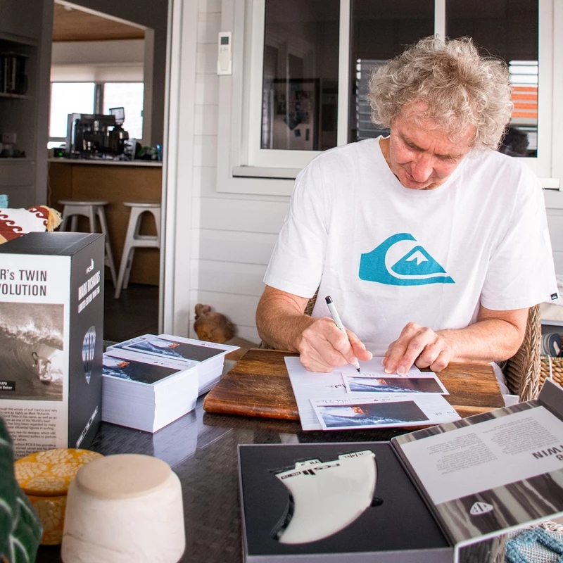 The MR Freeride Twin fin takes us back to 1978 when Mark was reshaping the way surfers approached the wave. Cut from an old fibreglass skateboard deck, the original freeride fins paired with Marks revolutionary surfboard design changed the direction of surfboard design forever.