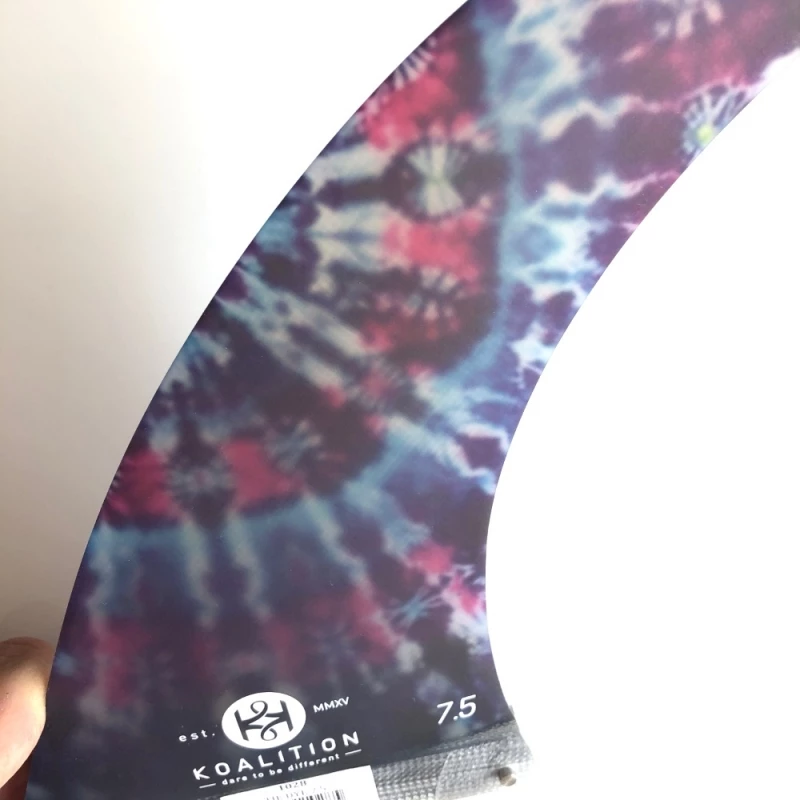 This 7.5 inch Koalition Tie Dye Longboard Fin is a classic dolphin surfboard fin with a stunning Tie Dye silk inlay. This versatile shape can be used in mid-length single fins and 2 plus1 longboards.