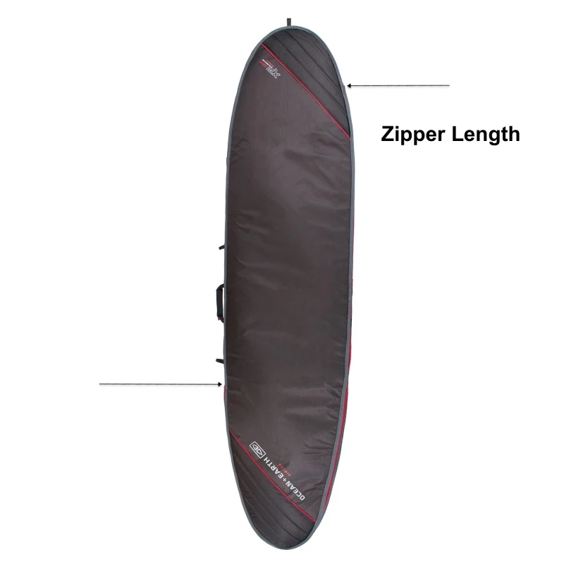 * Zipped fin slot opening so you can transport you board with the fin in, plus an ‘aircon’ zipped gusset to open the bag out if you ride thrusters or 2+1.